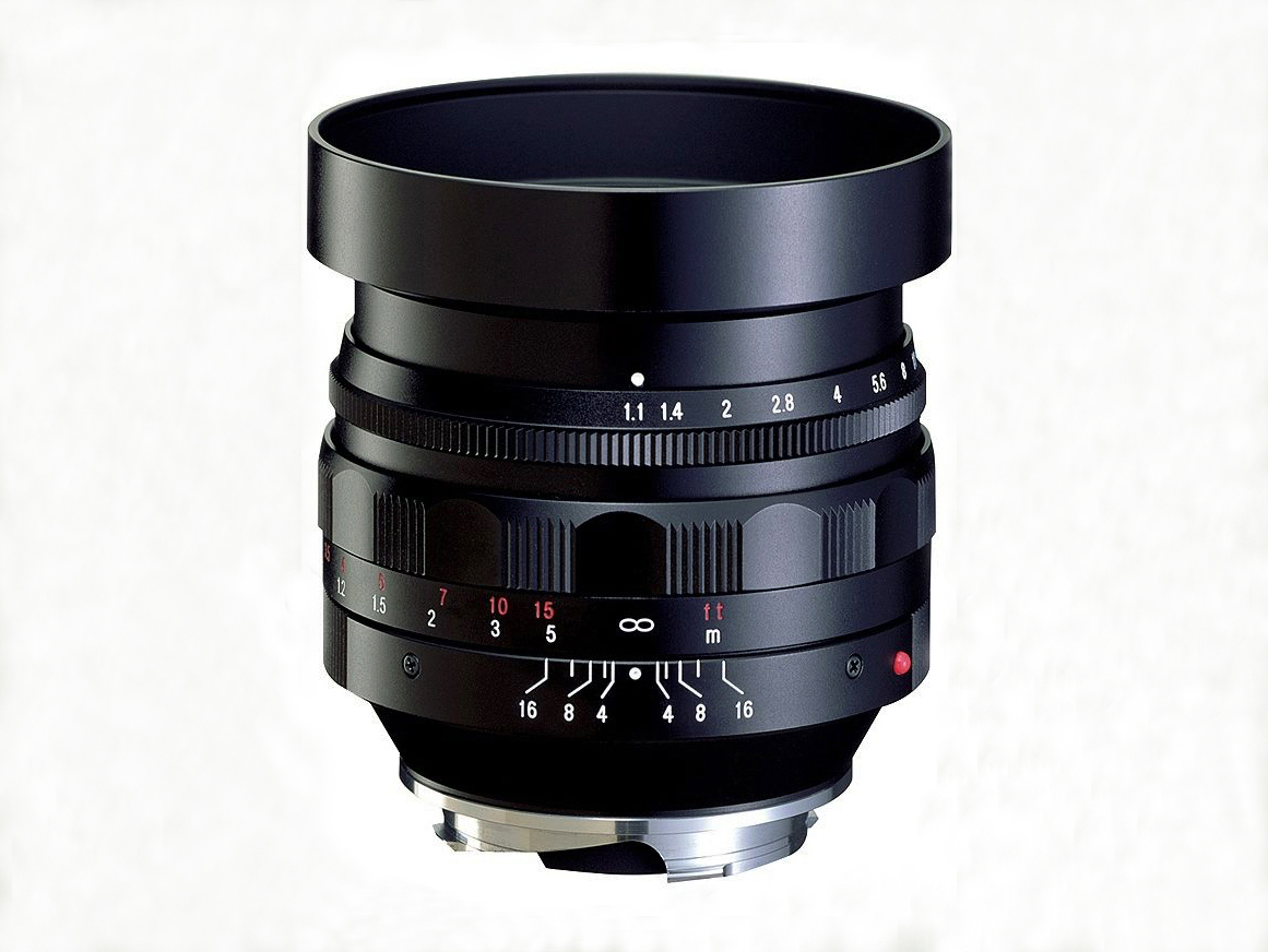 Non Aspherical Manual focusing 7 elements in 6 groups Voigtländer Nokton 50 mm f/1.1 in Leica M mount. An extraordinary lens made by Cosina Voigtländer, featuring 10 straight blades and a weight of 134 g.
